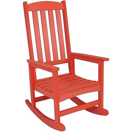 Sunnydaze Outdoor Patio Rocking Chair All Weather Faux Wood Design Salmon
